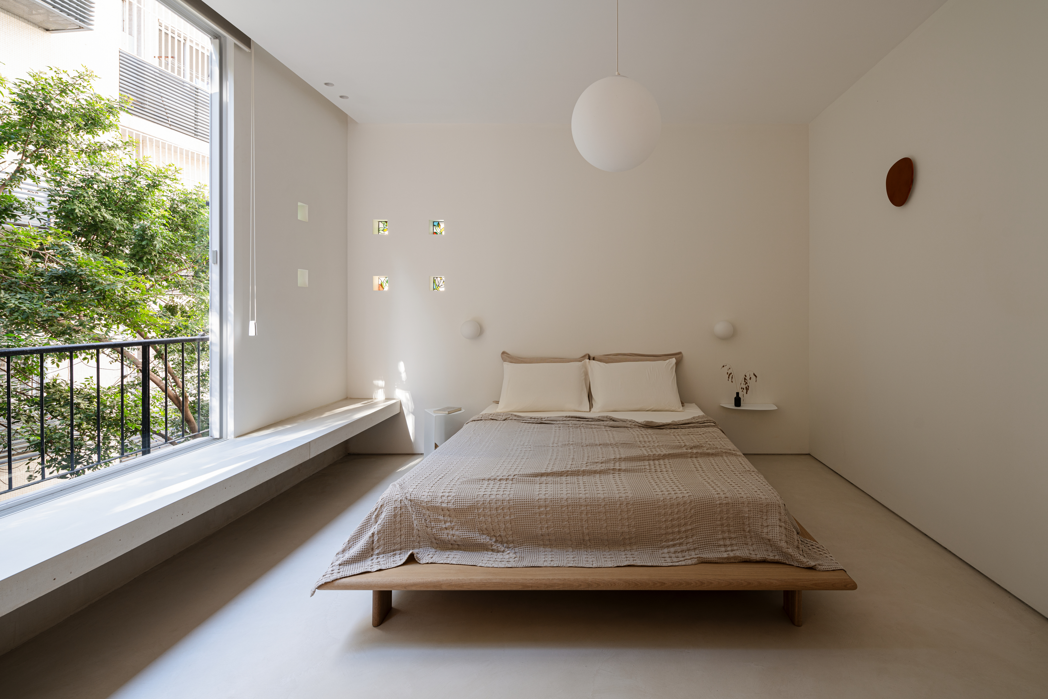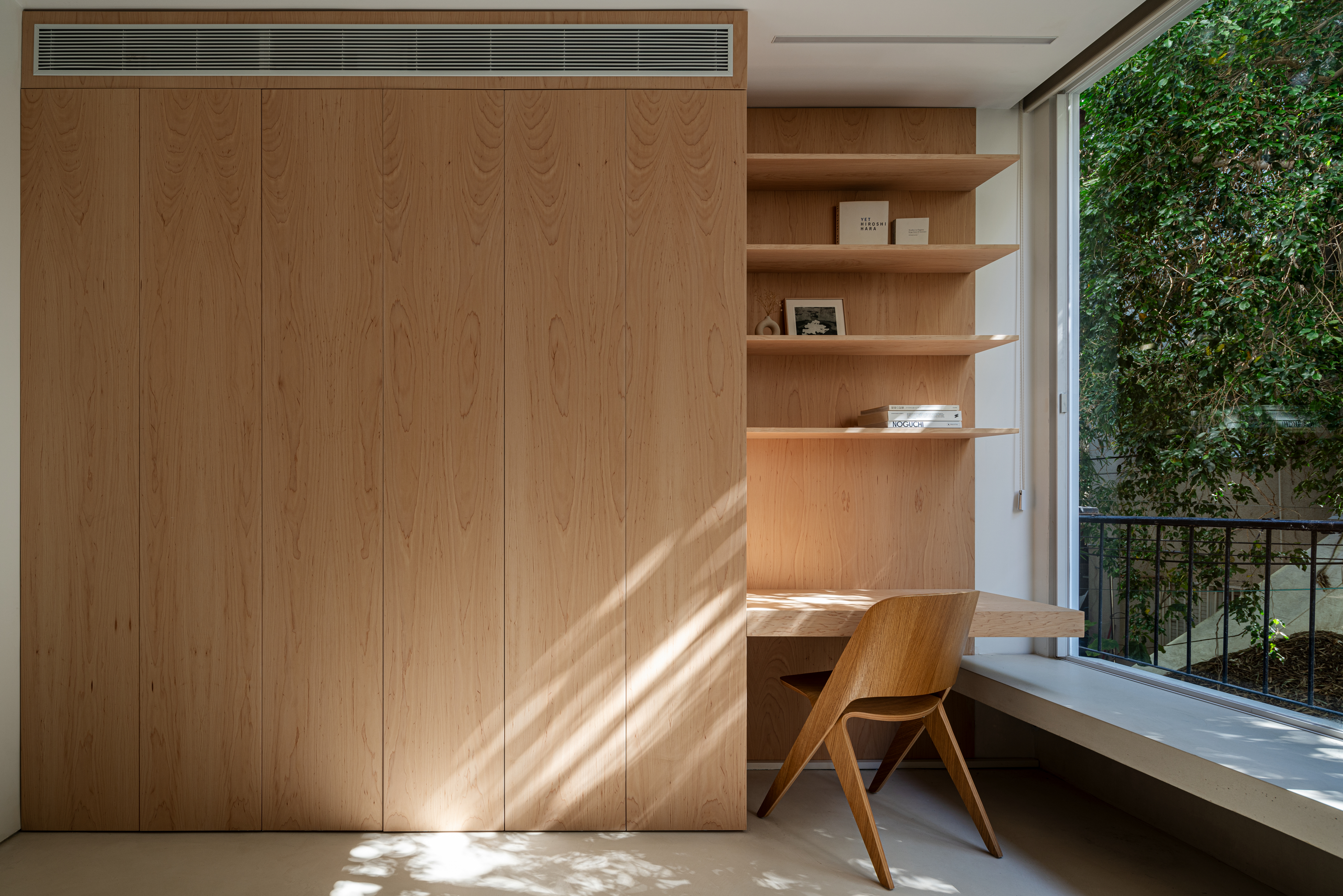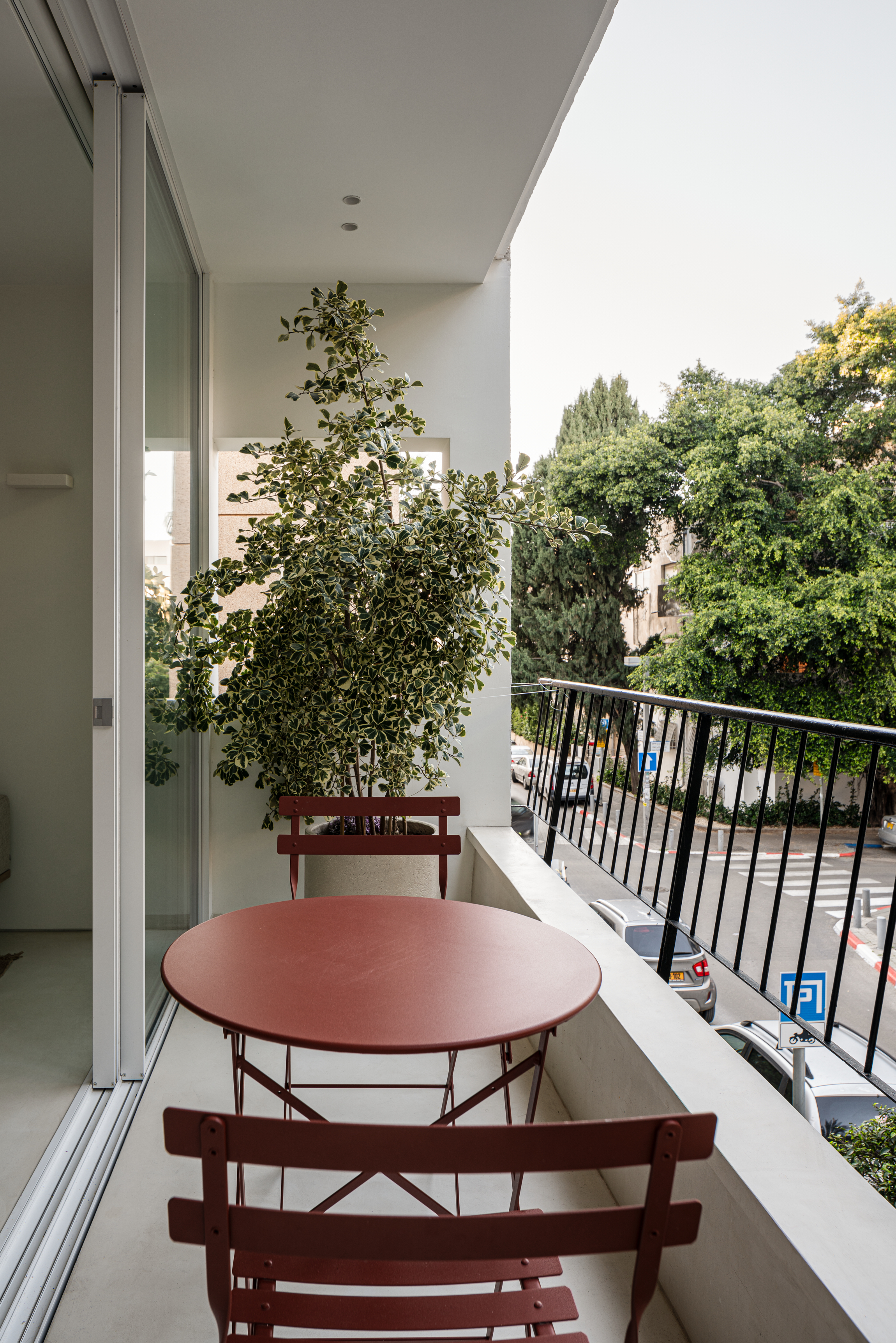 The layout of the apartment was previously divided into four small spaces. These were transformed into empty, open spaces following the principles of simplification and reduction that form the basis of the new design. The two opposing dominant facades at the ends of the apartment guided the design process, starting with opening the space between them to introduce natural light and abundant vegetation into the interior.